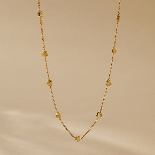 This elegant dainty gold necklace features small heart details, adding a touch of sweetness to any outfit. Made with high-quality materials, it is the perfect accessory to elevate your style. Add a touch of romance and charm to your wardrobe with Amorcito.